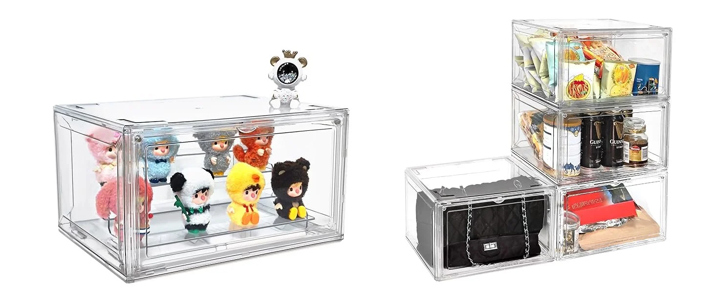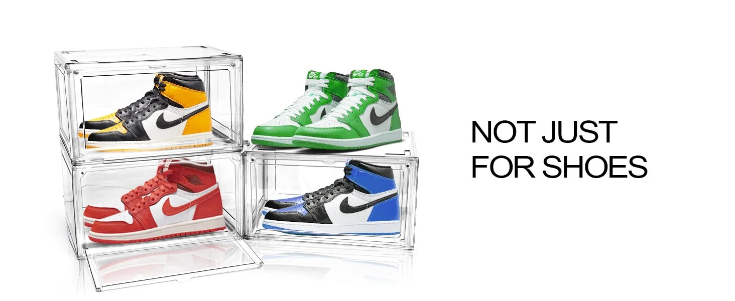 These shoe boxes crates can be stacked on top of each other and are completely transparent, designed for display. Keep your shoes or clothes dust-free and organized. Good for stacking without tipping. Save space in your room and look neat without being cluttered. Pair it with cool lighting and you'll create a sneaker collection room to show off, from where you can show off your out-of-print shoes on social media and you'll get a lot of likes and become an enviable collector.